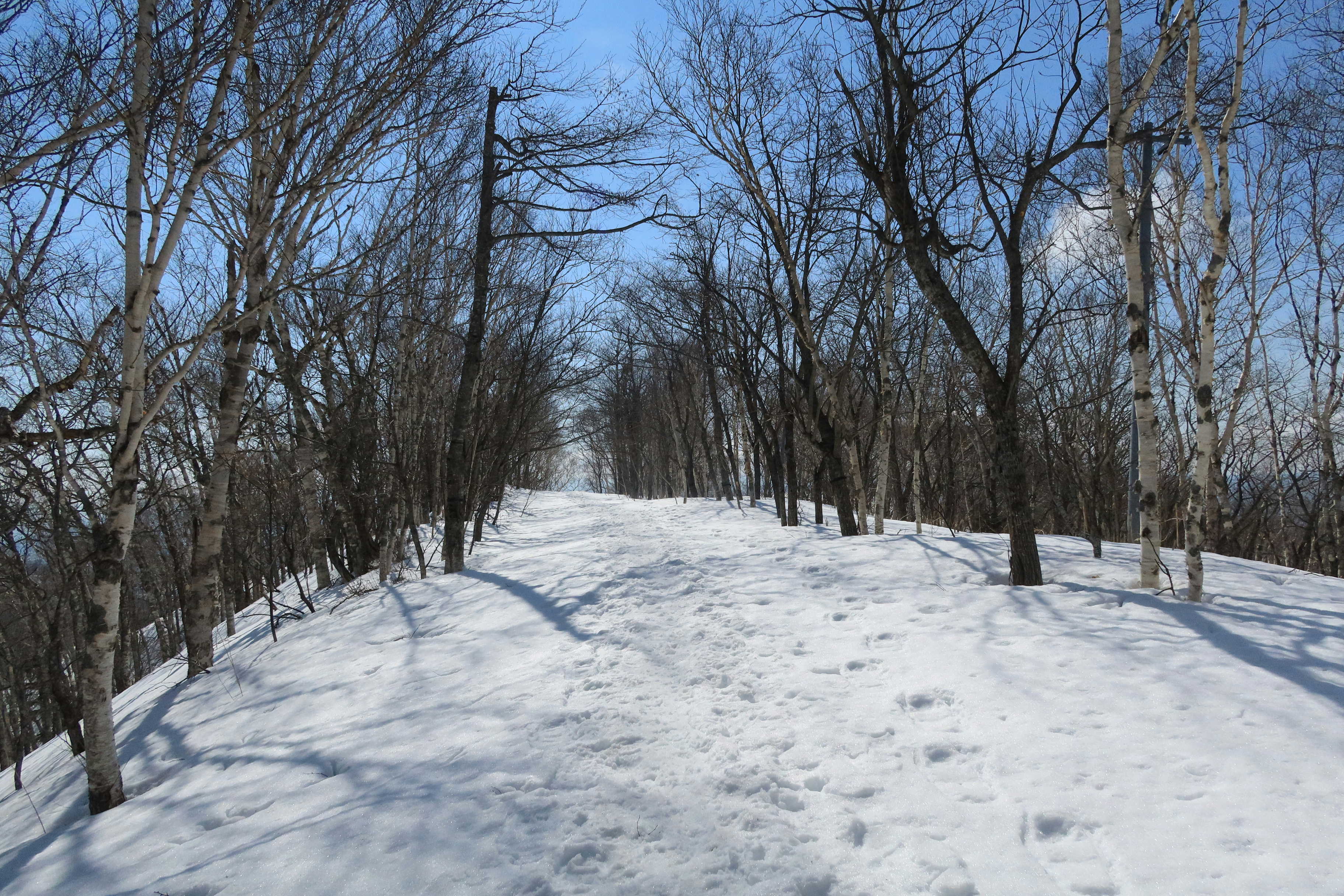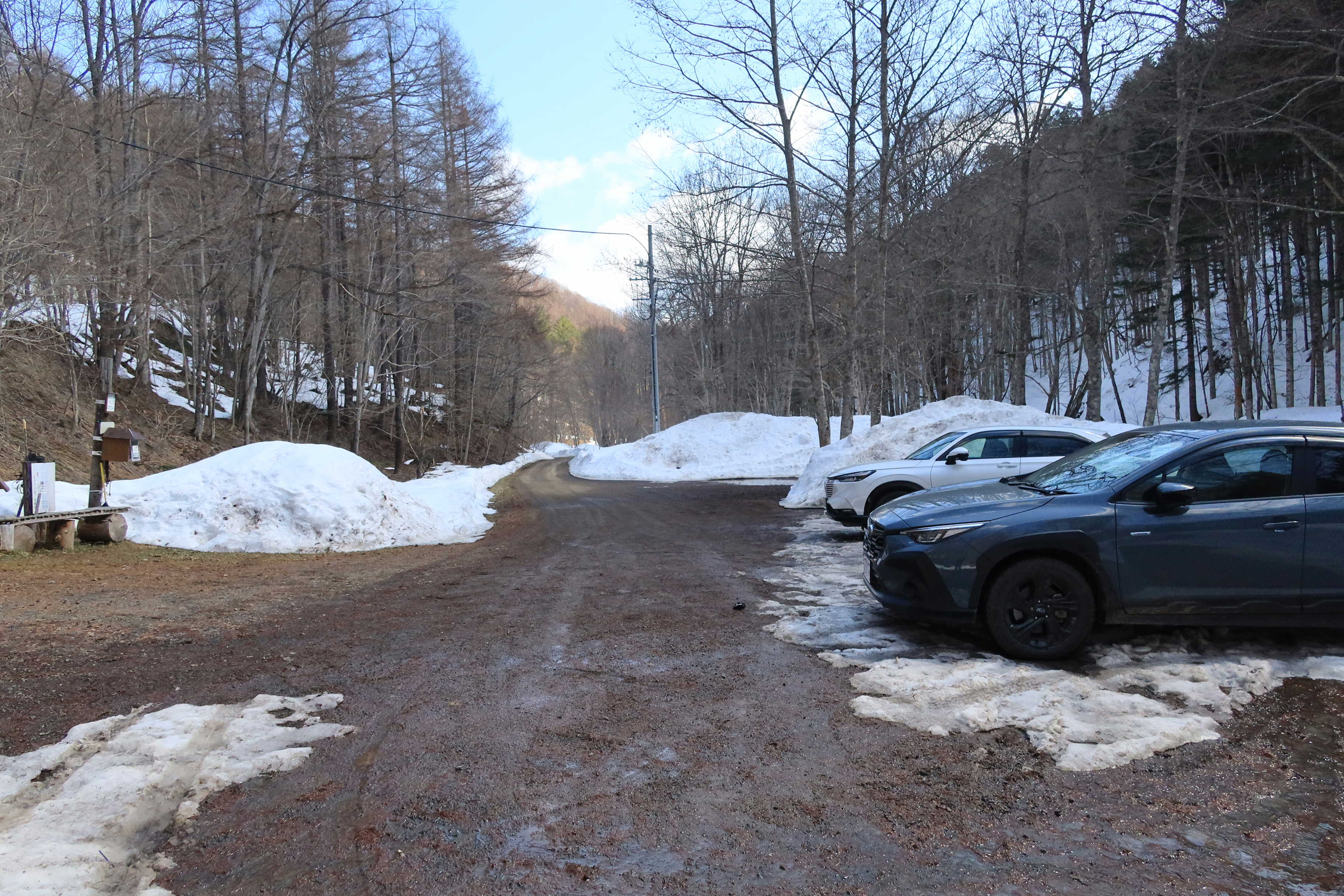 仁頃山に行ってきました。駐車場までは路面が出ていますが、登山道には積雪があってまだ歩きにくいです。
